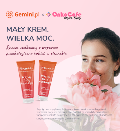 Gemini.pl to platforma, która pozwala kompleksowo zadbać o zdrowie całej rodziny. Zespół Gemini każdego dnia w jednym miejscu dostarcza rozwiązania, które pomagają zatroszczyć się o tę najwyższą wartość, jaką jest zdrowie. Zdajemy sobie sprawę, jak bardzo, w trosce o dobro najbliższych liczy się czas, dlatego szybkość realizacji zamówień i dostępność asortymentu jest dla nas priorytetem. Dostawa do wskazanego miejsca, szeroka gama produktów dają możliwość natychmiastowej reakcji, gdy w grę wchodzi zdrowie i dobre samopoczucie wszystkich domowników. Nasi eksperci pozostają do dyspozycji i odpowiadają na pytania dotyczące profilaktyki oraz innych zagadnień zdrowotnych.