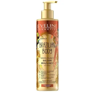 Nawilżający balsam brązujący Eveline Brazilian Body zapewnia naturalny efekt złocistej opalenizny. Dzięki lekkiej formule równomiernie się rozprowadza, nie pozostawiając smug i przebarwień. Efekt na skórze pojawia się stopniowo, dopasowując się do każdego typu karnacji. Kosmetyk łączy działanie brązujące z pielęgnacyjnym, intensywnie nawilżając i regenerując skórę dzięki zawartości m.in. masła kakaowego i olejów roślinnych.