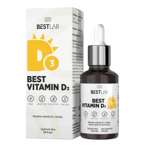 Suplement diety BestLab zawiera naturalną witaminę D z lanoliny zawieszoną w oleju MCT z kokosa. Butelka o pojemności 30 ml z wygodnym kroplomierzem zawiera 900 kropli. Opakowanie zapewnia aż 450 dni suplementacji.