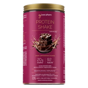 Odżywka białkowa MyBestPharm o smaku czekoladowego brownie to dietetyczny shake przeznaczony zwłaszcza dla kobiet, które chcą wspierać proces odchudzania i dbać o sylwetkę. Zawarty w nim błonnik z akacji pomaga kontrolować wagę, wspierając uczucie sytości między posiłkami. Produkt łączy wysokiej jakości białko i zestaw naturalnych składników oraz witamin, m.in. z grupy B, które wspierają prawidłowy metabolizm energetyczny.