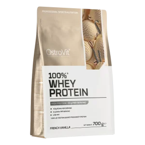 Głównym składnikiem odżywki białkowej OstroVit 100% Whey Protein jest koncentrat białka serwatkowego (WPC). Jedna porcja zawiera 21 g białka, wspierającego budowę i regenerację mięśni, co uzupełnia codzienne zapotrzebowanie na ten makroskładnik. Produkt ma niską zawartość tłuszczu (tylko 0,7 g w porcji) i jest słodzony sukralozą. Opakowanie zawierające 23 porcje wystarcza na długo.