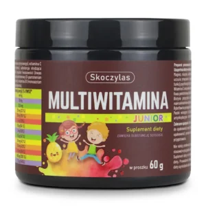 Multiwitamina dla dzieci i dorosłych Skoczylas to suplement diety w postaci proszku o owocowym smaku. Produkt uzupełnia dietę w kompleks witamin, minerałów oraz naturalne polifenole z pestek winogron. Starannie opracowany skład został pozbawiony cukru, barwników, konserwantów i przeciwzbrylaczy.