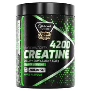 Laborell Creatine 4200 to wysokiej jakości suplement diety w proszku, zawierający monohydrat kreatyny. Produkt powstał z myślą o osobach aktywnych fizycznie i pracujących umysłowo, które chcą uzupełnić poziom kreatyny w codziennej diecie. Formuła szybko się rozpuszcza a orzeźwiający jabłkowy smak uprzyjemnia codzienne stosowanie.