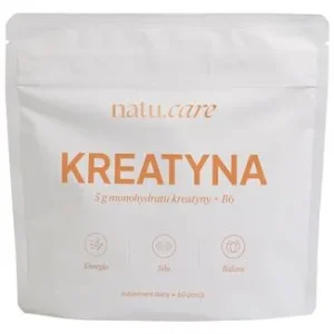 Natu.Care Kreatyna + B6 to bezsmakowy suplement diety w proszku zawierający kreatynę w formie monohydratu, przeznaczony dla osób aktywnych fizycznie i pracujących umysłowo. Jedna porcja dostarcza aż 4,4 g kreatyny, wspierając wydolność organizmu. Produkt zawiera także aktywną witaminę B6, która pomaga zmniejszyć zmęczenie i wspiera układ nerwowy. Dzięki mikronizacji proszek dobrze się rozpuszcza i jest łagodny dla układu pokarmowego.