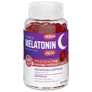 Przyjęta w formie suplementu, również w postaci żelków, działa na podobnej zasadzie. Pomaga „uruchomić” sygnał snu, szczególnie wtedy, gdy rytm dobowy jest zaburzony (np. przez stres, zmianę trybu dnia, jet lag czy korzystanie z ekranów wieczorem).